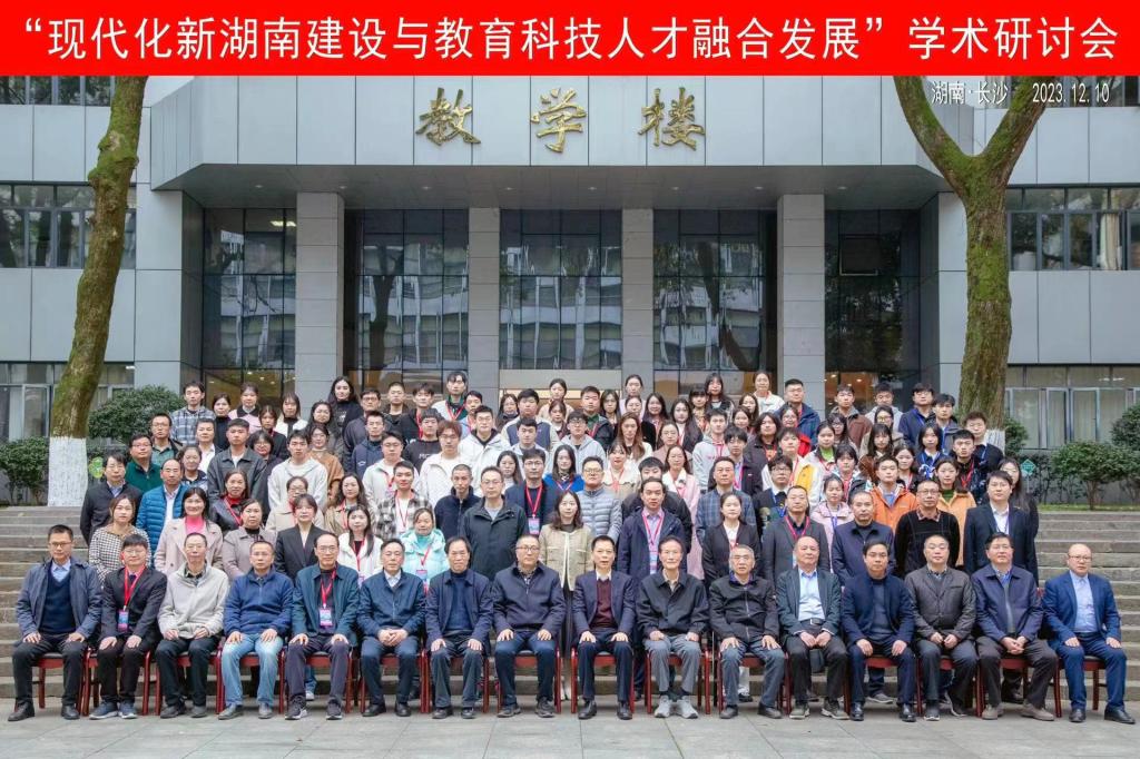为进一步落实习近平总书记在湖南考察调研时的重要讲话精神,2023年12月10日,由中共湖南省委党校(湖南行政学院)主办,湖南省自然辩证法研究会、科技与生态文明教研部、湖南省科技战略研究中心承办,湖南省自然辩证法研究会“现代化新湖南建设与教育科技人才融合发展”学术研讨会在湖南长沙隆重召开。来自全省各地的80多名专家、学者参加,我院院长张今杰教授、李锋锋副教授、刘牧讲师和研究生代表应邀出席。